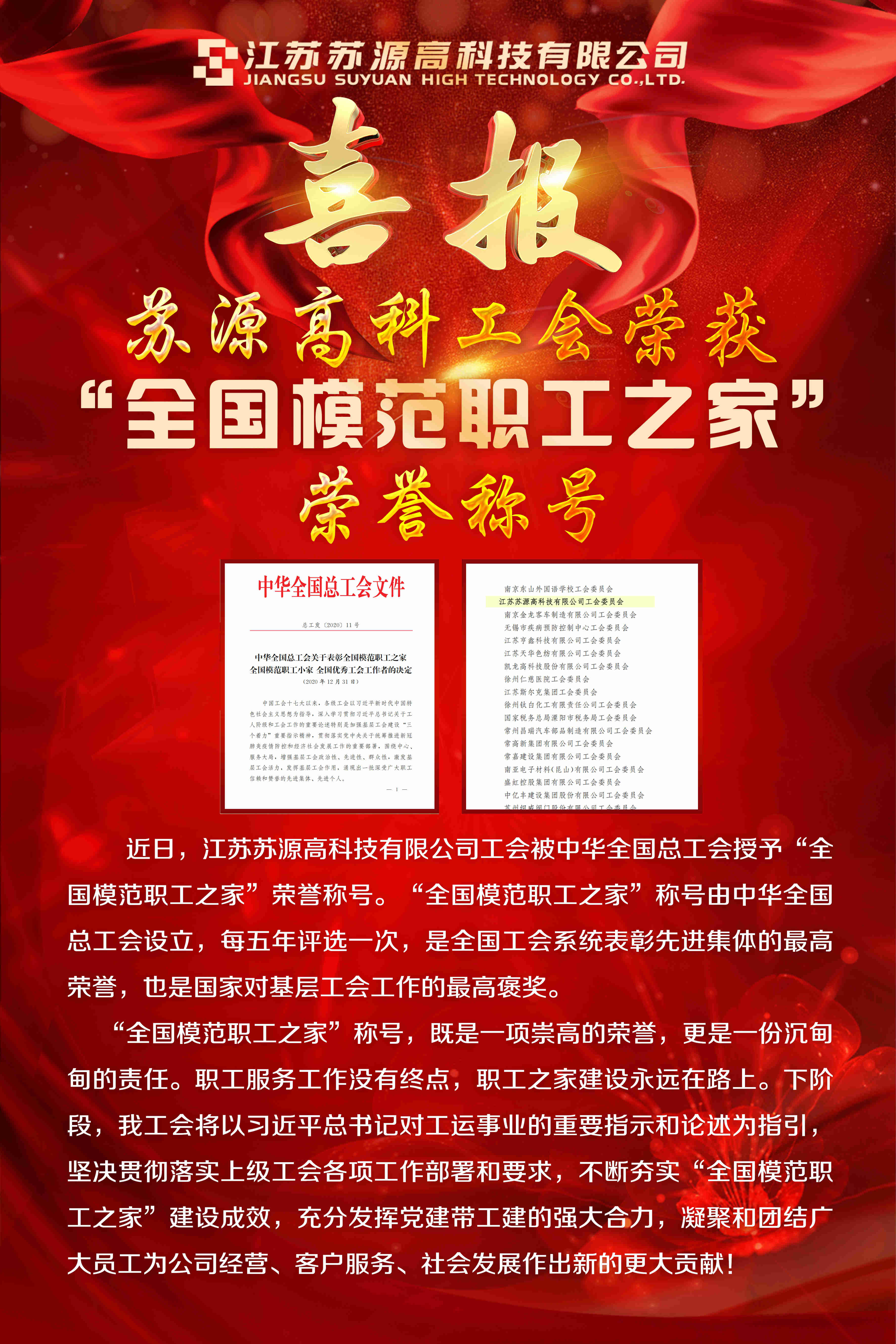 喜報(bào)!蘇源高科工會(huì)榮獲“全國(guó)模范職工之家”榮譽(yù)稱號(hào)